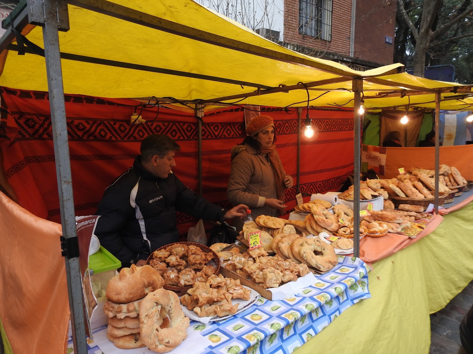Hacía un frío de esos que hace tiempo que no se sentían. Nada detenía al viento que abundantemente lograba colarse por Avenida de los Corrales, en esta parte mas baja y desprotegida de la Ciudad Autónoma de Buenos Aires. Con gorro y bufanda caminamos bajo las Tipas viendo los puestos de comidas típicas, como Empanadas, Locro, Tamales, Humita, Pastelitos de esos patrios, Pasta Frola de membrillo y de batata, quesos de vaca, de cabra y de oveja, longaniza, chocolates, alfajores y churros.